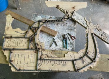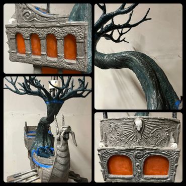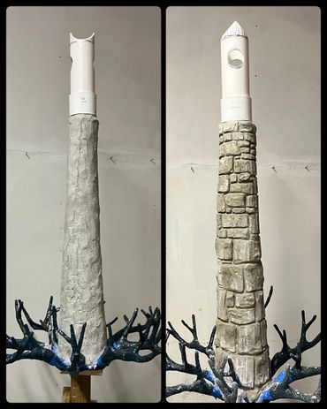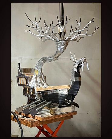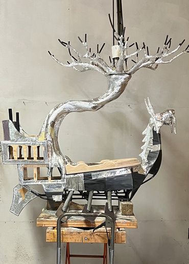 The sculpture is Brian’s original concept, which symbolizes the story arc of an artist’s life. “To Tame A Beast” is both a self-contained narrative and another piece in Brian’s schematics for a fantasy-themed “Epiclog Island” immersive art project.