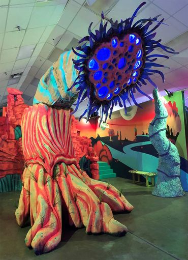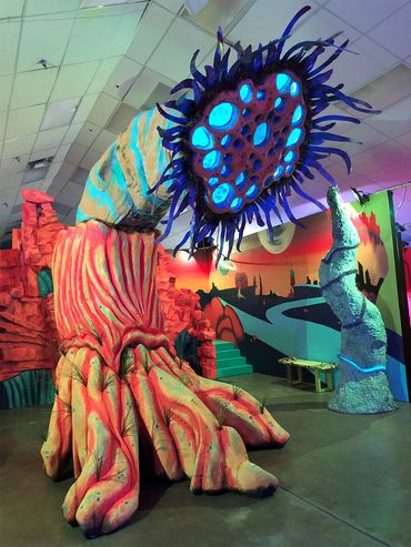 The Grit Shop served as a fabrication consultant and collaborated in fabricating large vines, an orange mountain and