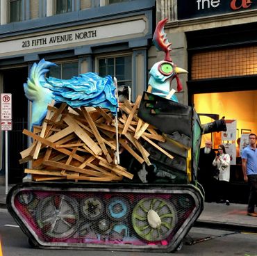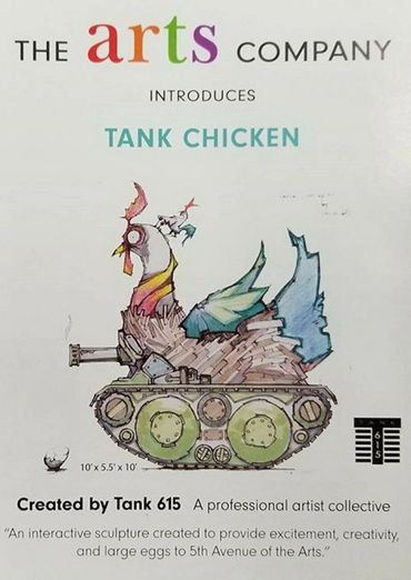 In 2018, they created TANK CHICKEN. This 15' tall, interactive sculpture was displayed at The Arts Company Gallery in Downtown Nashville, TN.